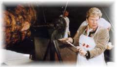 LH Waltraud Klasnic hat als erste Politikerin die ehrenvolle Aufgabe, den gebratenen Ochsen anzuschneiden. | |